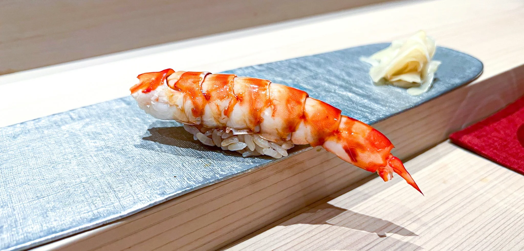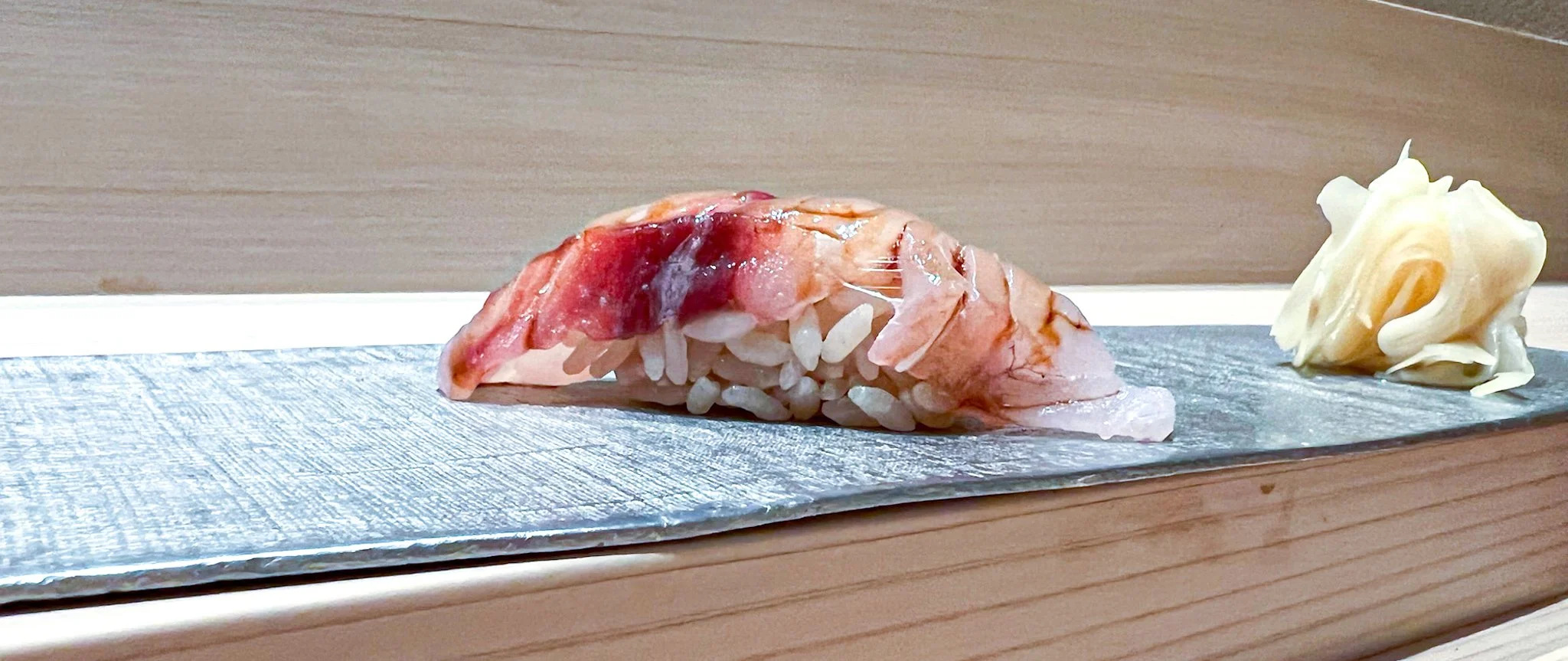 Kuruma-Garnele (kuruma ebi) hat ihre typische nussige Süße, ist aber eine Nuance übergart, sodass ein leicht trockener Eindruck entsteht.