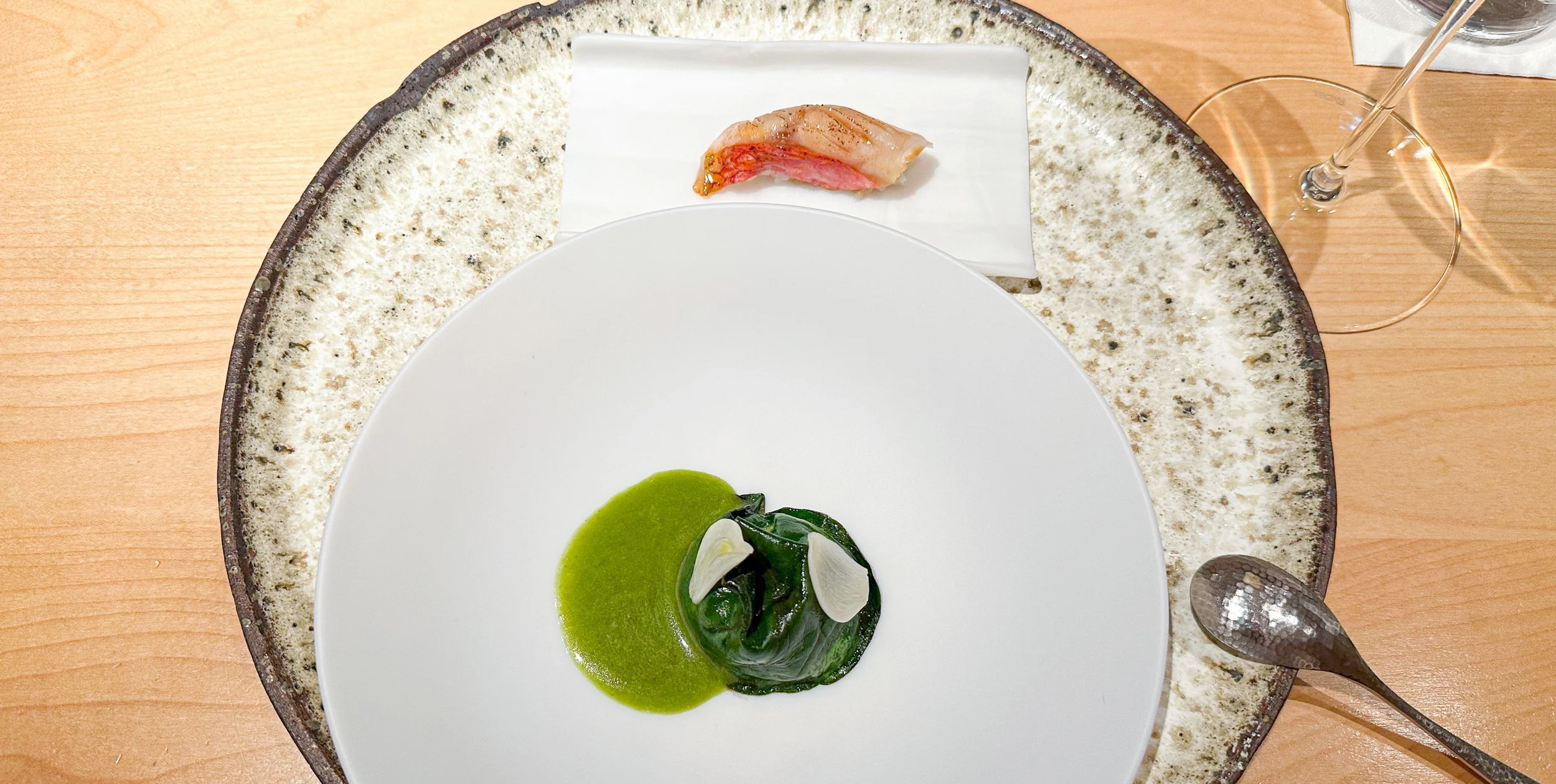 Angeboten werden zwei Menüs (110 € bzw. 167 €), die sich auf dem Papier nur unwesentlich unterscheiden (hier noch ein Gang, da noch etwas Kaviar, da noch ein Süppchen). Bereits die günstigere Variante beinhaltet elf Gänge mit einer zusätzlichen Option auf Wagyu-Rind (dann 134 €). Vor dem Hintergrund eines später noch bevorstehenden Abendessens erscheint mir die kompaktere Variante als ausreichend. Zu diesem Zeitpunkt weiß ich auch noch nicht, dass selbst dieses Mahl bis in den späten Nachmittag andauern wird.