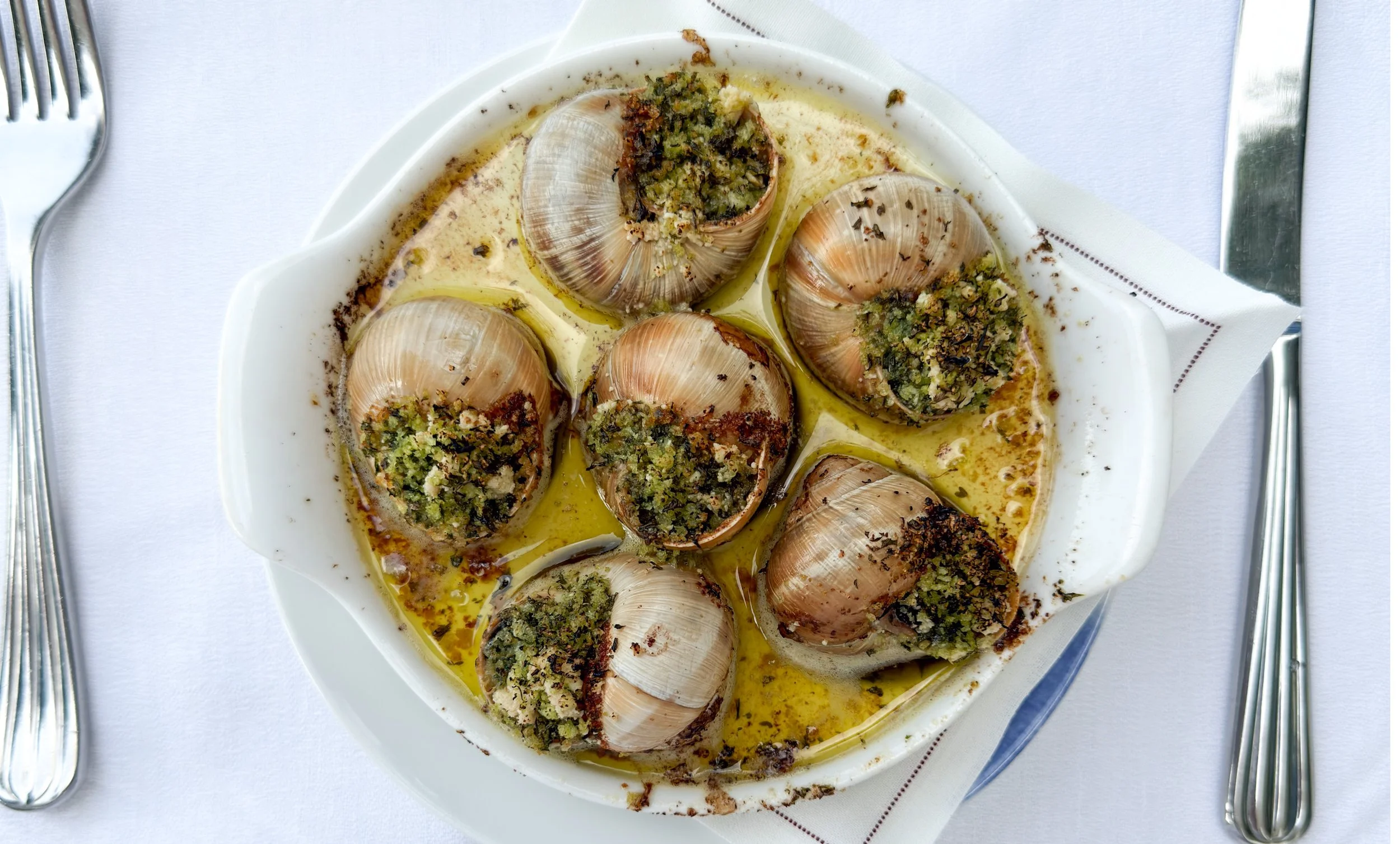 Die üppige Portion Thunfisch durchkreuzt allerdings auch meine Pläne, mich ausführlicher durch die Karte zu probieren. Etwas Kleineres muss her, herzhaft und heiß darf es auch sein, wie: Schnecken (ca. 27 €).