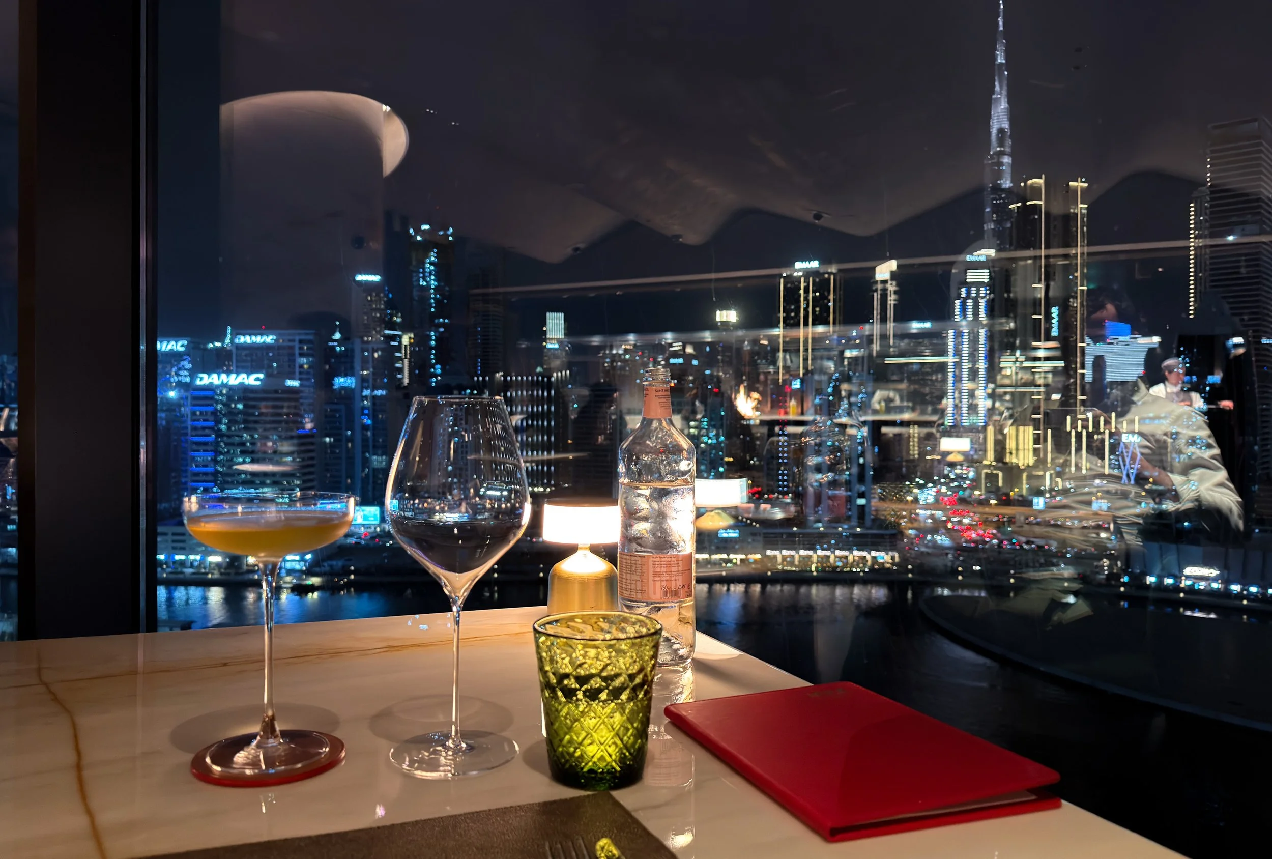 An meinem Tisch am Fenster atme ich tief durch und genieße das Ankommen bei einem Cocktail: El Tomate auf Basis von Vodka, Paprika, Passionsfrucht, Tomate und Vanille (105 AED, ca. 24 €) ‒ mild, aber mit appetitanregendem Umami.