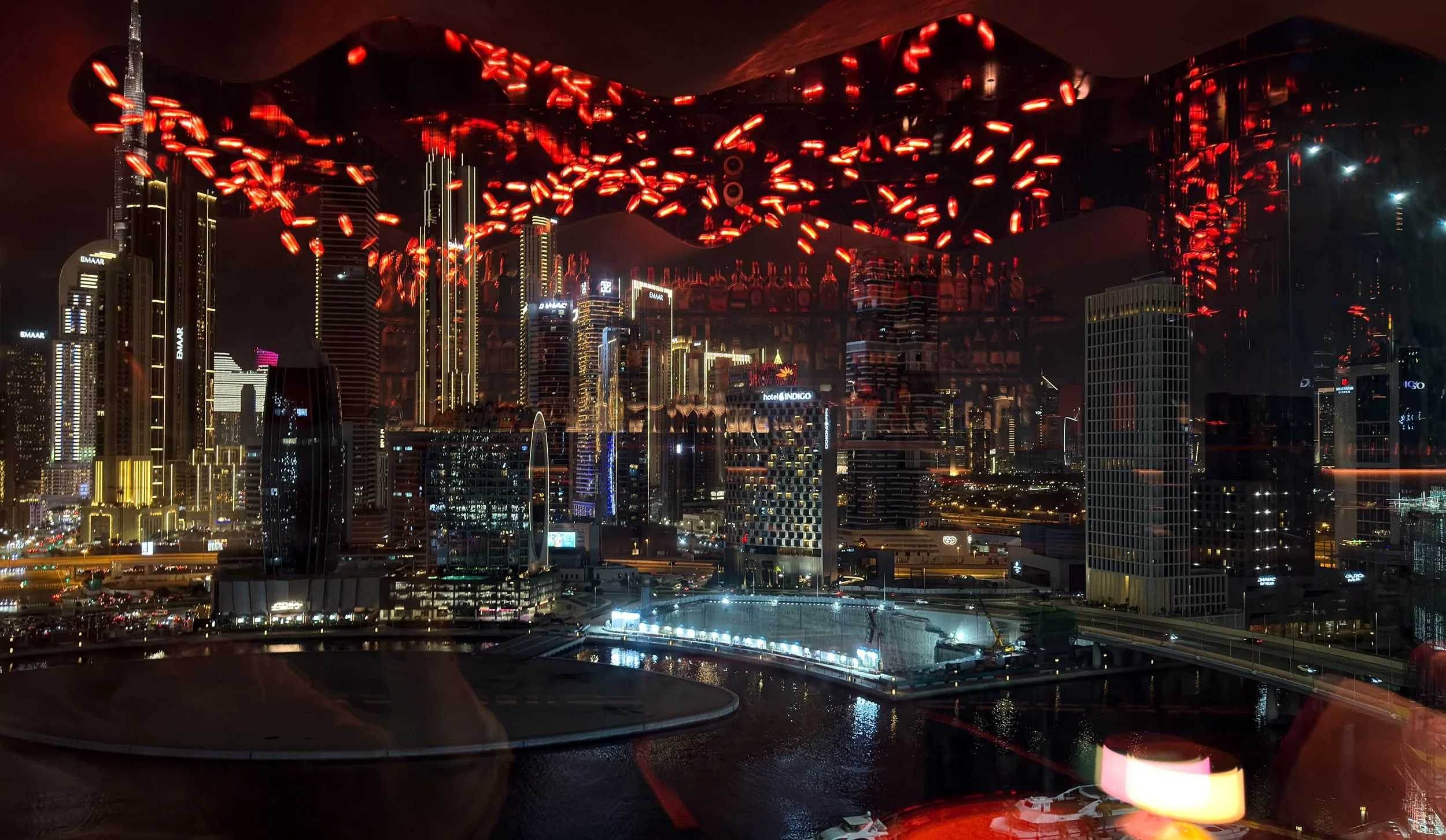 Das Restaurant befindet sich im 18. Stock des Hotels und zieht einen schon beim Eintreten mit seiner dunklen, offenen und edlen Atmosphäre in den Bann ‒ die surreal leuchtende Skyline von Dubai trägt Wesentliches dazu bei.
