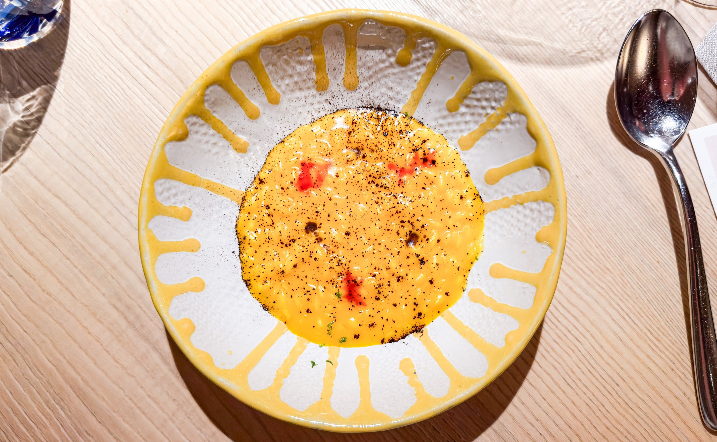 Wenn ich von meinem Besuch damals irgendetwas mitgenommen habe, dann eines der einprägsamsten Gerichte überhaupt: das Safran-Risotto von Massimiliano und Raffaele Alajmo. Und das ist tatsächlich eine Reise wert.