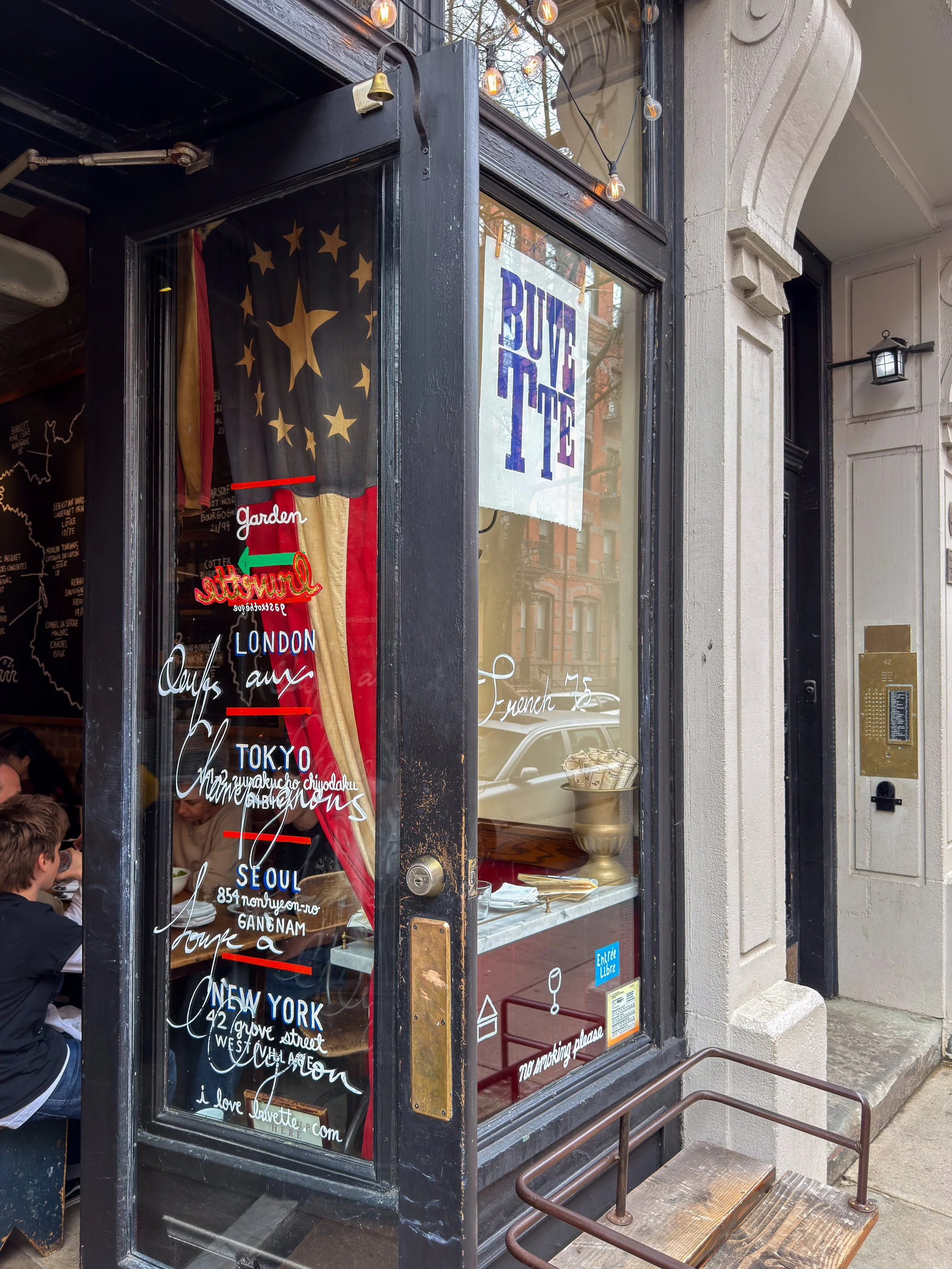 Also auf ins Buvette, der populären französischen »Gastrothèque« von Jody Williams. Während mich die Atmosphäre hier im West Village bei sommerlichen Temperaturen komplett verzaubert, wundern mich die mediokre glasweise Weinauswahl und ein recht fad gewürztes, zerkochtes Gericht mit Artischocke und anderen Gemüsen. Wunderbar, hier zu sitzen, ist es dennoch.
